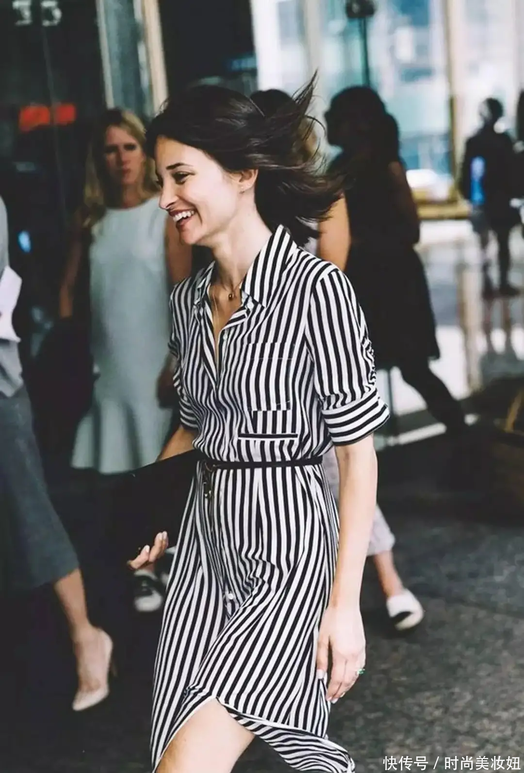 微胖型女生在穿衬衫裙中最不应该踩的坑就是横条纹的神色,横条纹即即是身材纤细的女生出穿起来也会在视觉上显得横向的宽度更宽一些,身材略微肥美点几乎是车祸现场了,尤其是搭配上五颜六色的盘算几乎有一种行走的沙发的既视感了。